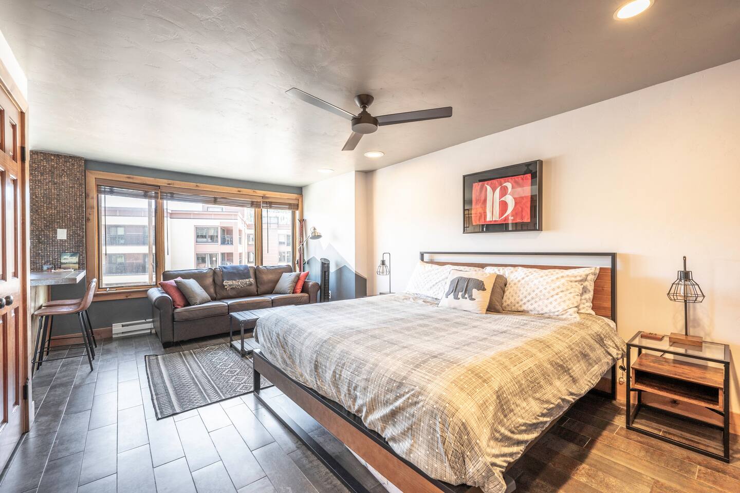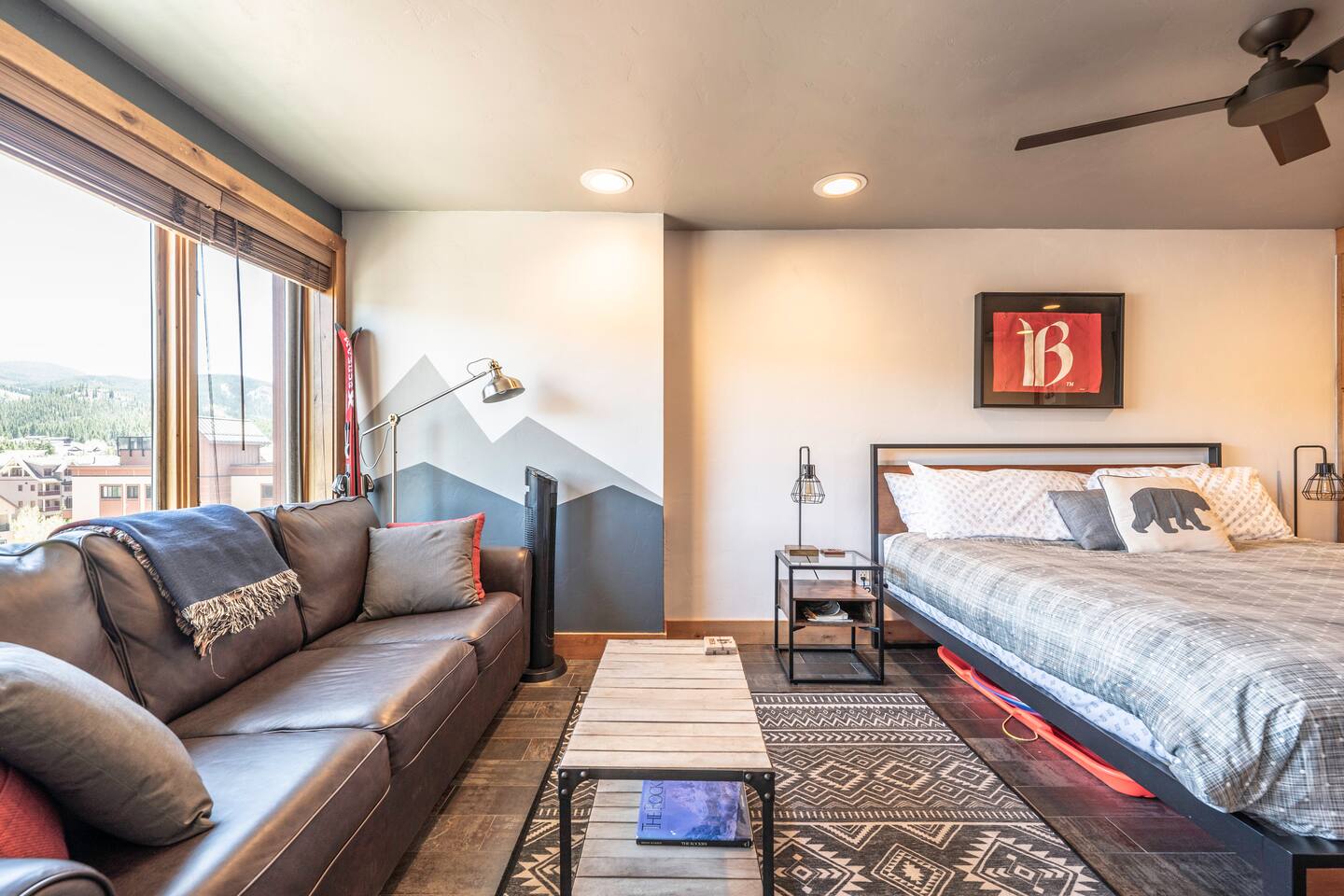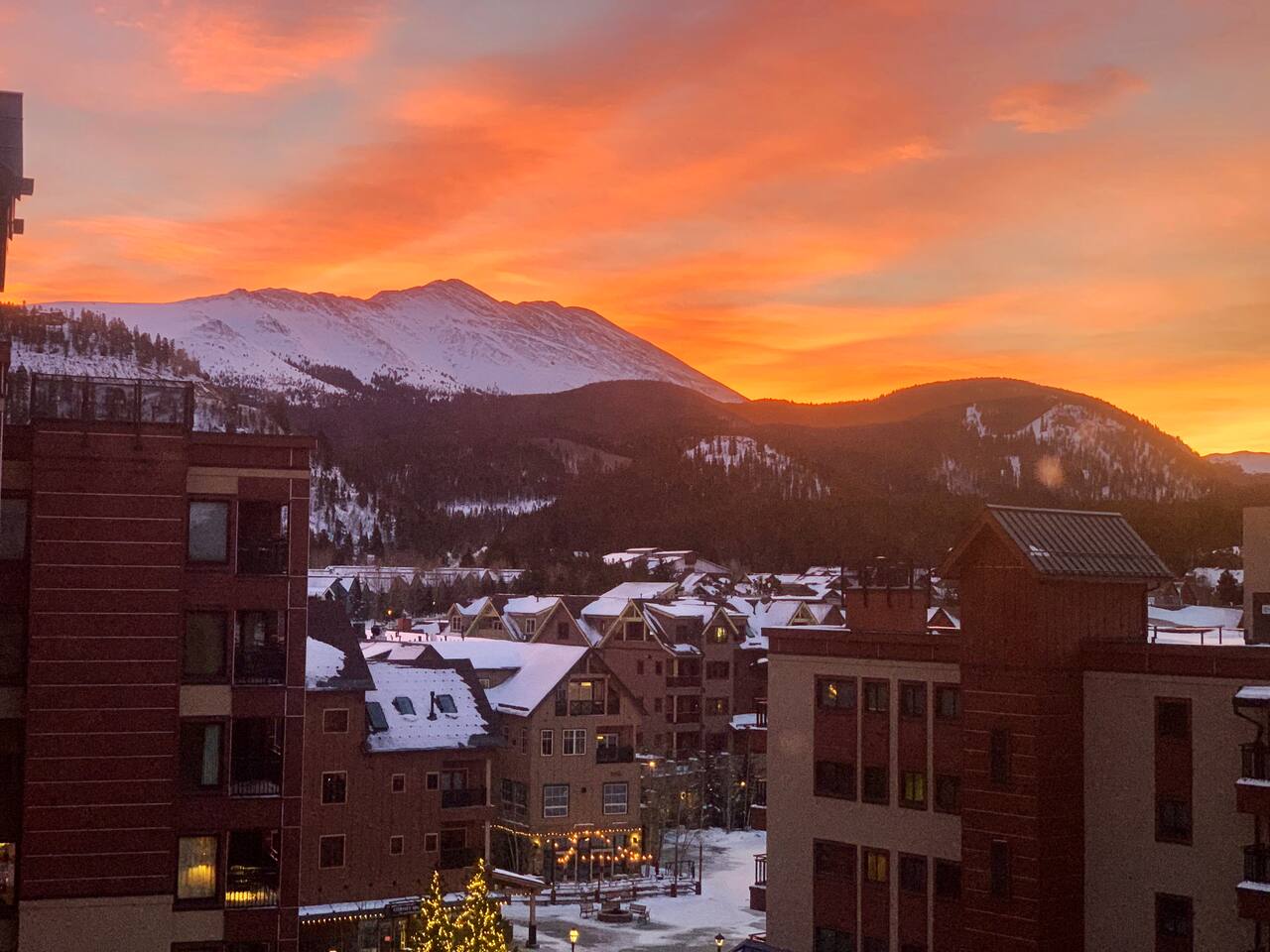 🎿 Ski-in/Ski-out 6th floor King Studio w/ epic sunrises over Baldy Mnt! Unbeatable location at the base of Peak 9 w/ direct access to Quicksilver Chairlift, ski school & just off Main St. Find ultimate relaxation in the 4 hot tubs, indoor/outdoor pool, sauna, steam room and in room AC now through fall. Paid parking available or leave the car and take the shuttle for stress free travel. Storage lockers available. Sleeps 4: new king bed & queen sleeper sofa. We send a great planning guide!