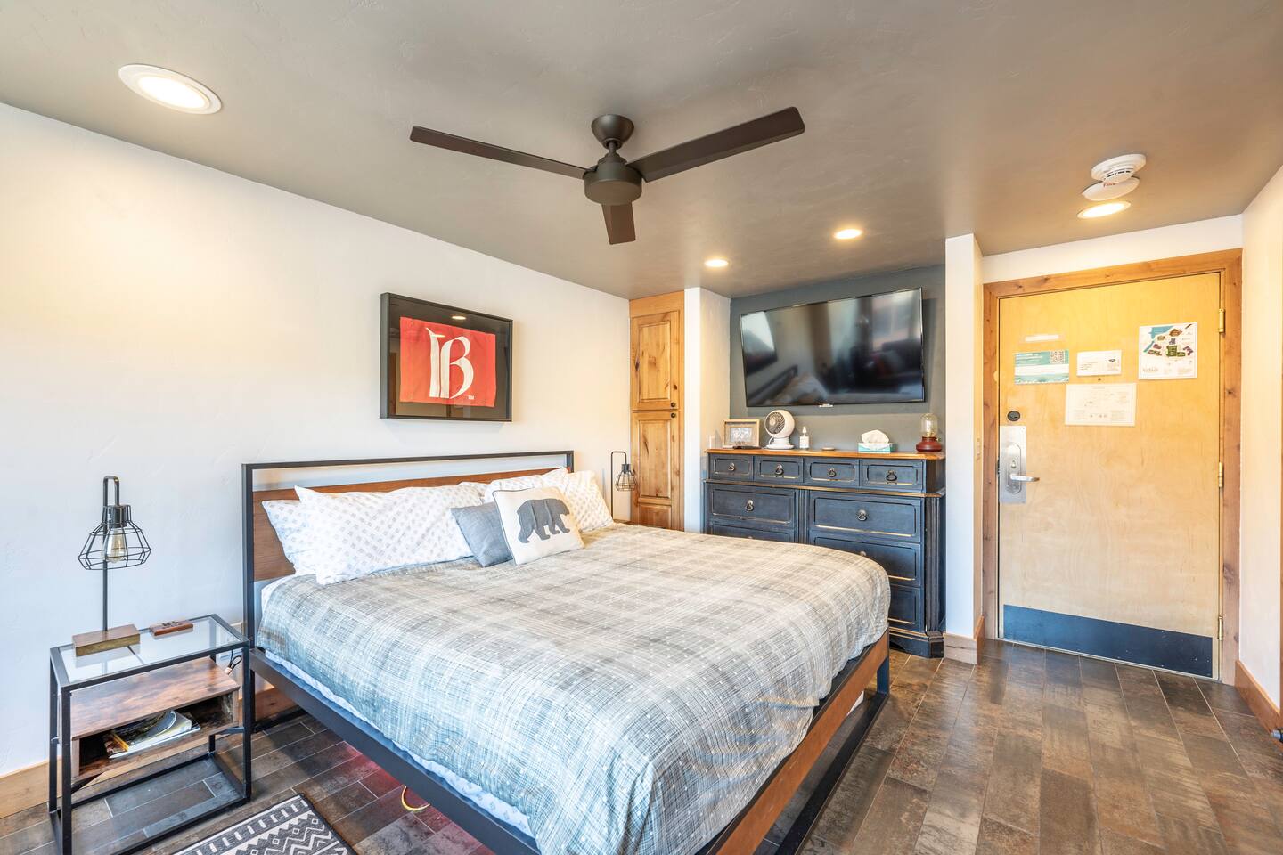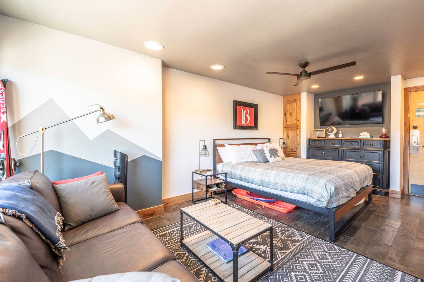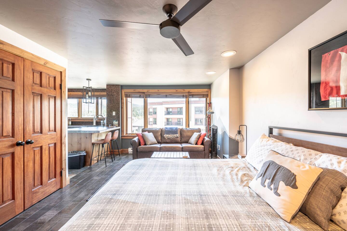 🎿 Ski-in/Ski-out 6th floor King Studio w/ epic sunrises over Baldy Mnt! Unbeatable location at the base of Peak 9 w/ direct access to Quicksilver Chairlift, ski school & just off Main St. Find ultimate relaxation in the 4 hot tubs, indoor/outdoor pool, sauna, steam room and in room AC now through fall. Paid parking available or leave the car and take the shuttle for stress free travel. Storage lockers available. Sleeps 4: new king bed & queen sleeper sofa. We send a great planning guide!