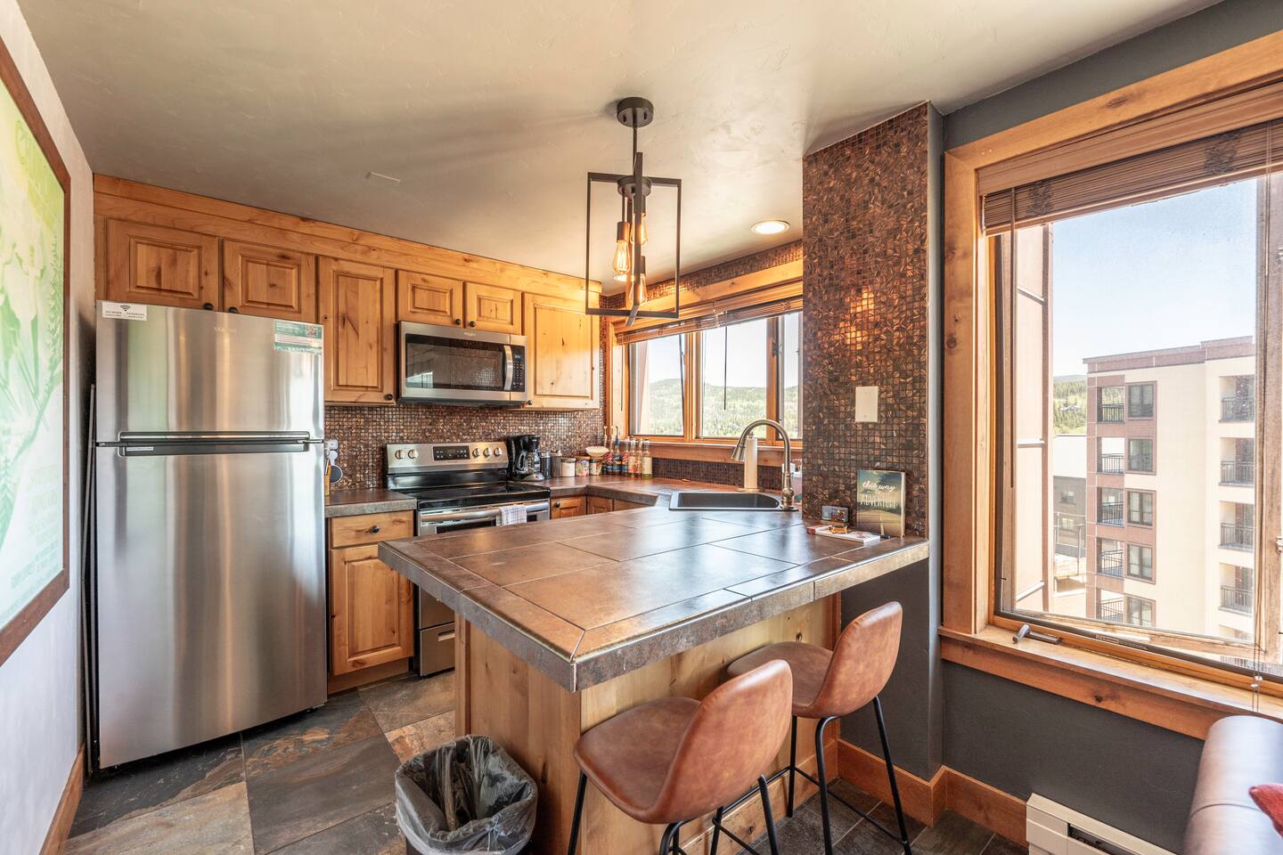 Village at Breckenridge - Liftside @ Peak 9 Inn - Unit 4604 - Ski-In/Ski-Out THE CONDO This is a 6th floor 400 sq foot studio with great views and phenomenal sunrises over Baldy Mountain. King-sized bed with Denver Mattress Doctor's Choice Medium Plush mattress and queen-size leather pull-out couch with a new Classic Brands 5 inch memory foam mattress. There is a Smart 55 inch flat screen TV with HD cable, closet, four-person dining peninsula, fully equipped kitchen with new stainless steel oven, refrigerator, microwave, coffeemaker w/ coffee/ tea and all cooking basics. The bathroom is divided into three rooms making it very functional for multiple guests. The bathroom has double sinks, a large mirror and bathtub with a shower. Rest assured you’ll be cool on the hottest days as we have a new portable AC unit in the summers. Seasonal AC Portable AC unit in the summer, but you’re still able to open the windows. Usually installed from June - October, depending on the weather, it's only needed in July and August. COFFEE & KITCHEN We provide ground coffee, teas, hot chocolate, powder creamer & syrups. The coffee machine is a Keurig Duo for ground coffee or k cups. We provide a reusable k cup filter for coffee grounds. The kitchen is fully loaded with all utensils and basic cooking supplies (salt, pepper, olive oil and spices). You’re welcome to leave any groceries at departure and we will make sure they get repurposed for future guests or donated to the foodbank. HOT TUB, POOL, FITNESS CENTER, MOVIE ROOM & XBOX GAMING ROOM The new $5 million renovated health club now features an indoor/ outdoor pool with a shallow pool for young children with a slide and water features, four large hot tubs with water falls, gym, steam room, sauna, community room with games, couches, fire place, large tv and 15 seat movie room. Pool and hot tub hours are daily from 10am to 10pm. Fitness center and game room hours are daily from 6am to 10pm. UNIT ACCESS TIMES Check-In: 4:00pm. Early check-in/parking can’t be confirmed until the night before/morning of arrival. Check-Out: 10:00am. Late check-outs can’t be accommodated. Early Access: The Health Club is accessible as early as 8:00am on arrival day. Late Departure: Health Club access is available until 5:00pm on departure day. Luggage Storage: Available daily 8:00am–5:00pm for shuttle guests via a reservation in the digital app located in the garage near the Health Club. THE BUILDING The Village at Breckenridge is a large complex located between Main Street and Peak 9 base. It's connected to: ski rentals, lift tickets, ski school, Quicksilver Chairlift and Silverthorne ski run. The unit is located in the Liftside @ Peak 9 Inn building. BUILDING PAID PARKING: NOT INCLUDED $45 a night year around - From check in to check out. Garage entry height is: 7 feet 6 inches. I can reserve one paid parking spot in the building's garage for $ a night year-round, based on availability. The garage does routinely hit capacity, especially last minute, on weekends or holidays. Payment required within 72 hours of reserving and is non-refundable. The town has eliminated all free overnight parking between 2am-6am on all streets and lots in Breckenridge. If needed, it's paid separately through Airbnb by a Payment request. Booking doesn't reserve a parking space. ALTERNATIVE PARKING You can park free for 30 minutes to unload/load at the garage entrance of the building by putting your license plate number in the hourly parking machine. Ice Rink Parking Lot (189 Boreas Pass Rd): 4 blocks away. You can walk through the Village Plaza to cut the walk in half. Cost: $20 weekdays/$35 weekends. SHUTTLE During winter, nearly all of our guests flying to Colorado take a shuttle service from Denver or Eagle Airport. Shuttles are incredibly reliable with hourly departures regardless of weather. You’ll also travel in comfort with wifi and avoid the hassle of chain restrictions and winter conditions. Once you arrive, everything is within 2 blocks and you don’t need a car. Shuttles should be reserved in advance. The top shuttles are: Epic Mountain Express (20% off with Epic Pass), Summit Express, Peak 1 Express & Fresh Tracks COLORADO I-70 HIGHWAY TRACTION LAW IN EFFECT SEPT 1 - May 31 The vehicle must have 4WD/AWD, snow tires or traction chains and a minimum tire tread depth of 3/16 inch on the I-70 mountain corridor. Most Denver rental cars do not meet this requirement. Tickets start at $130/ $650 if you block traffic. This is why the shuttle is the best choice!
